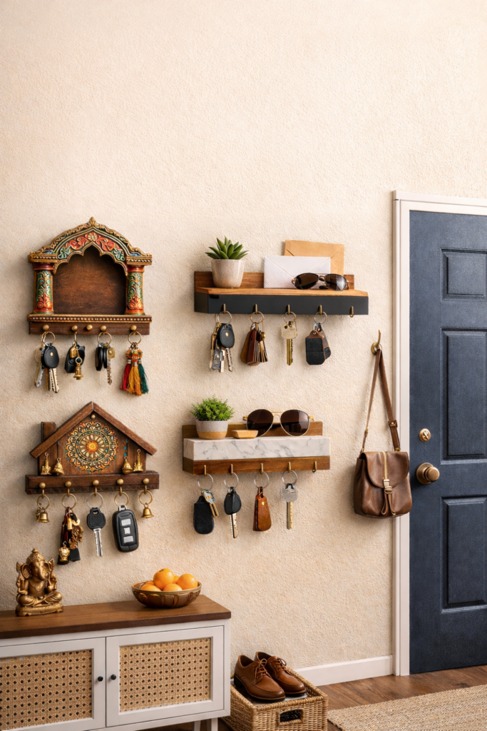 Never lose your keys again with stylish Key Holder Wall Ideas. Opt for wood, metal, or handcrafted designs that complement Indian Room Decor or minimalist interiors.