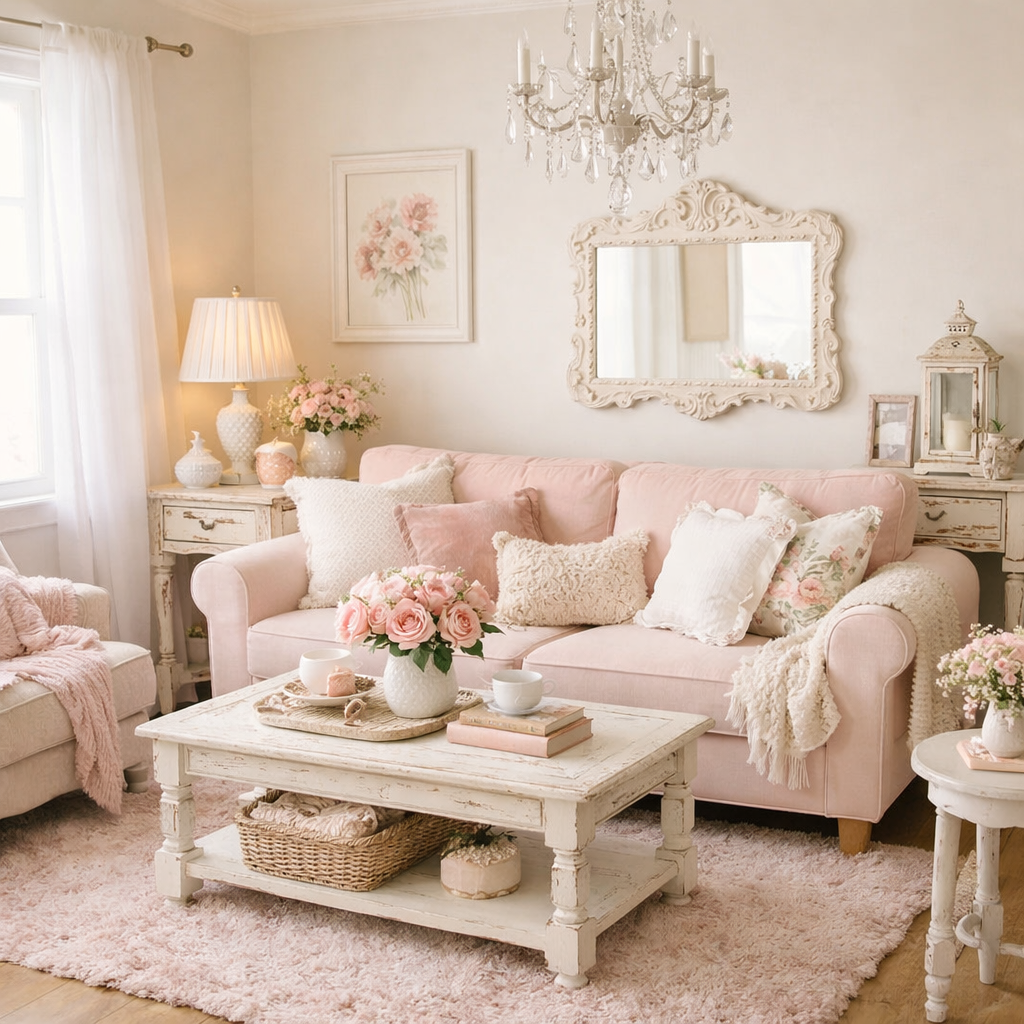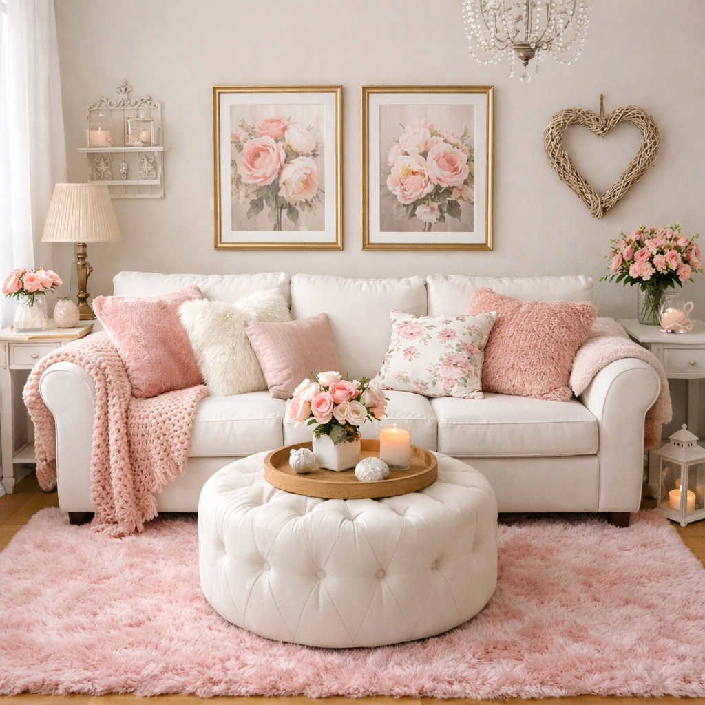 Comfort matters as much as beauty. A plush romantic sofa, layered with cushions and throws, creates an inviting cute living room vibe. Try white couch pink rug combinations for a fresh yet cozy look.