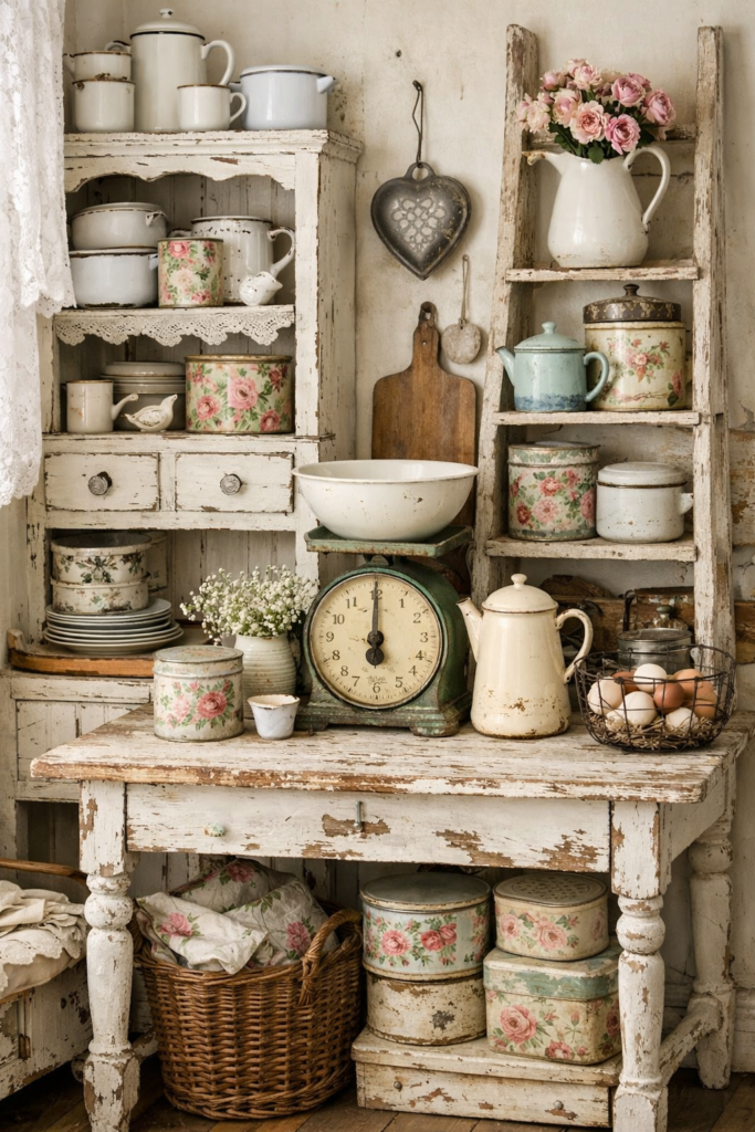 Look for Thrifted Home Decor finds—old scales, enamelware, or floral tins—to enhance a Vintage Cottagecore Aesthetic. This layered approach gives your kitchen a soulful, collected feel.