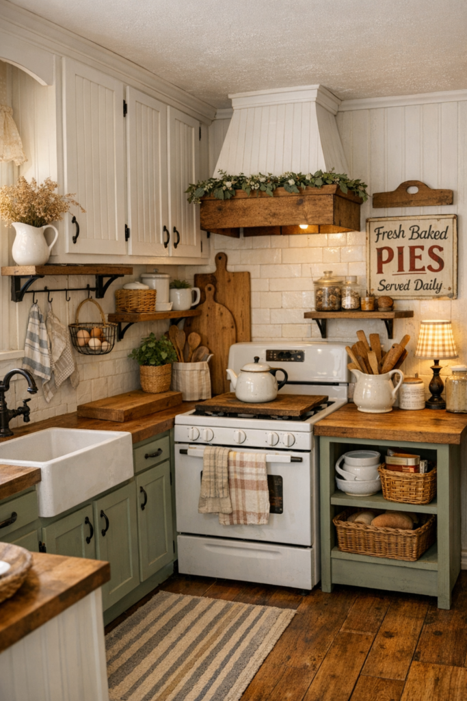 A small vintage table, ladder shelf, or distressed hutch can anchor your Shabby Chic Kitchen Decor. These pieces shine in Small Country Kitchens where furniture feels curated rather than matched.
