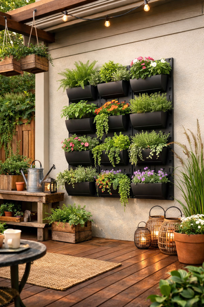 Vertical gardens are ideal for small garden ideas for small spaces, urban backyard design ideas, and apartment balcony decorating.