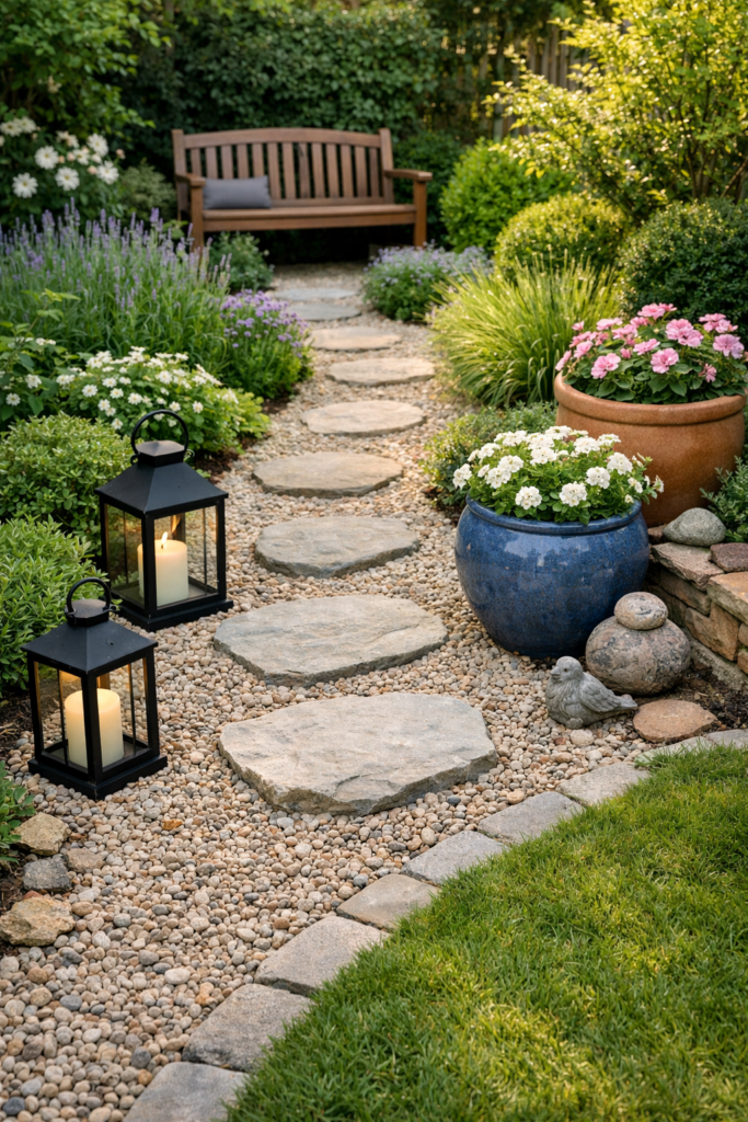 8. Use Gravel Paths and Lawn Decorations