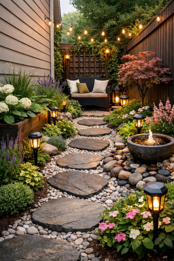 Add plants, stones, or a small seating corner to create a peaceful relaxing garden ideas space.
