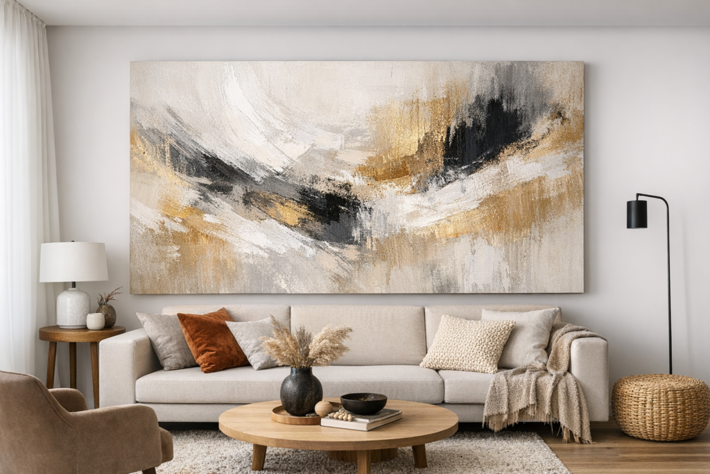 1. Oversized Statement Art for Small Living Room Wall Decor 🎨