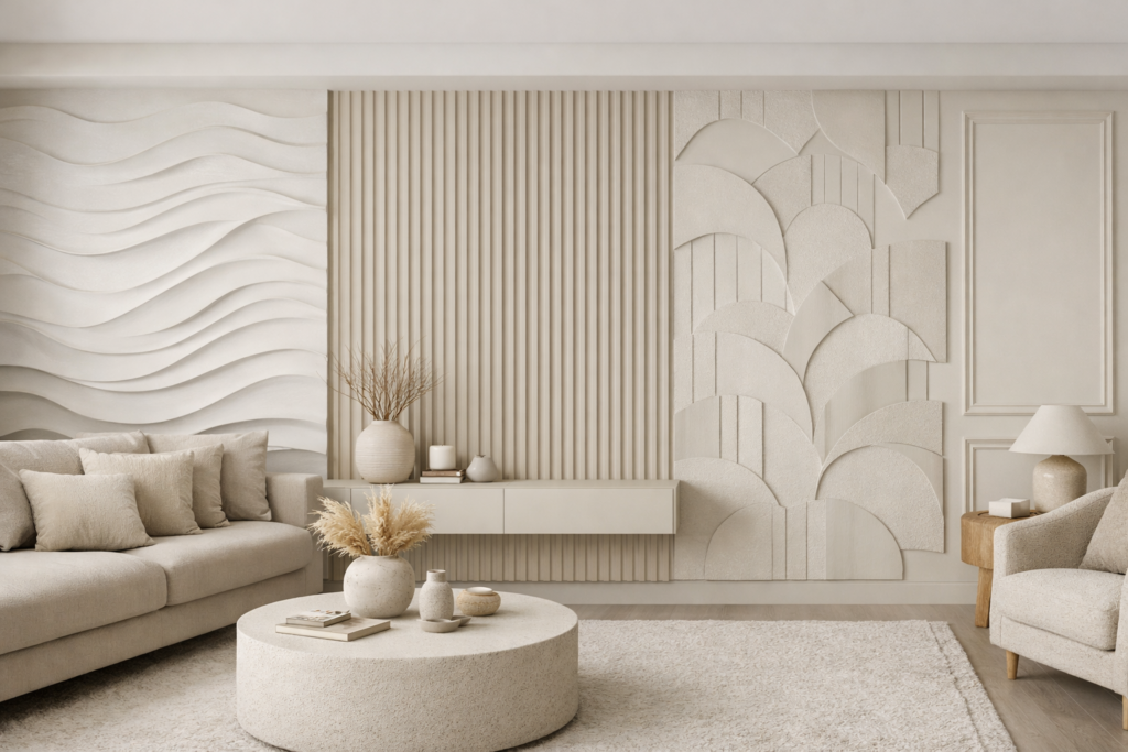 3D wall panels, fluted designs, and subtle plaster finishes are dominating modern apartment wall decor trends this year. These features add depth and luxury without adding clutter.