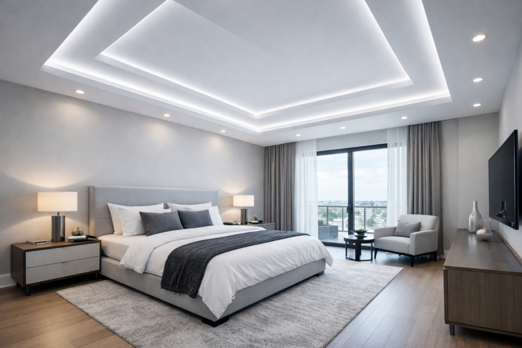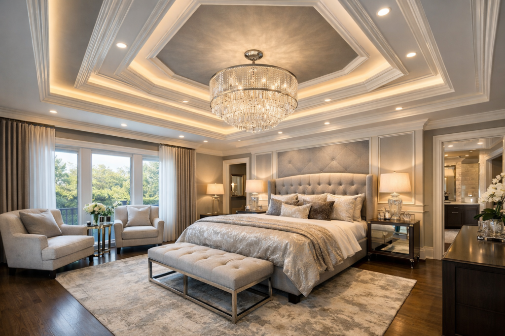 A bedroom tray ceiling is more than just an architectural feature—it adds elegance, height illusion, and luxury. Whether you prefer a simple tray ceiling or a layered deep tray ceiling, this design enhances your bedroom ceilings instantly.