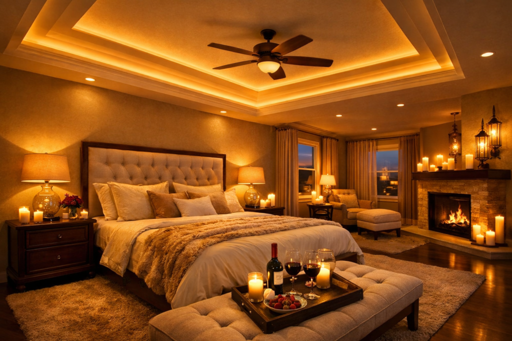 🕯️ 3. Romantic Warm Lighting Tray Ceiling