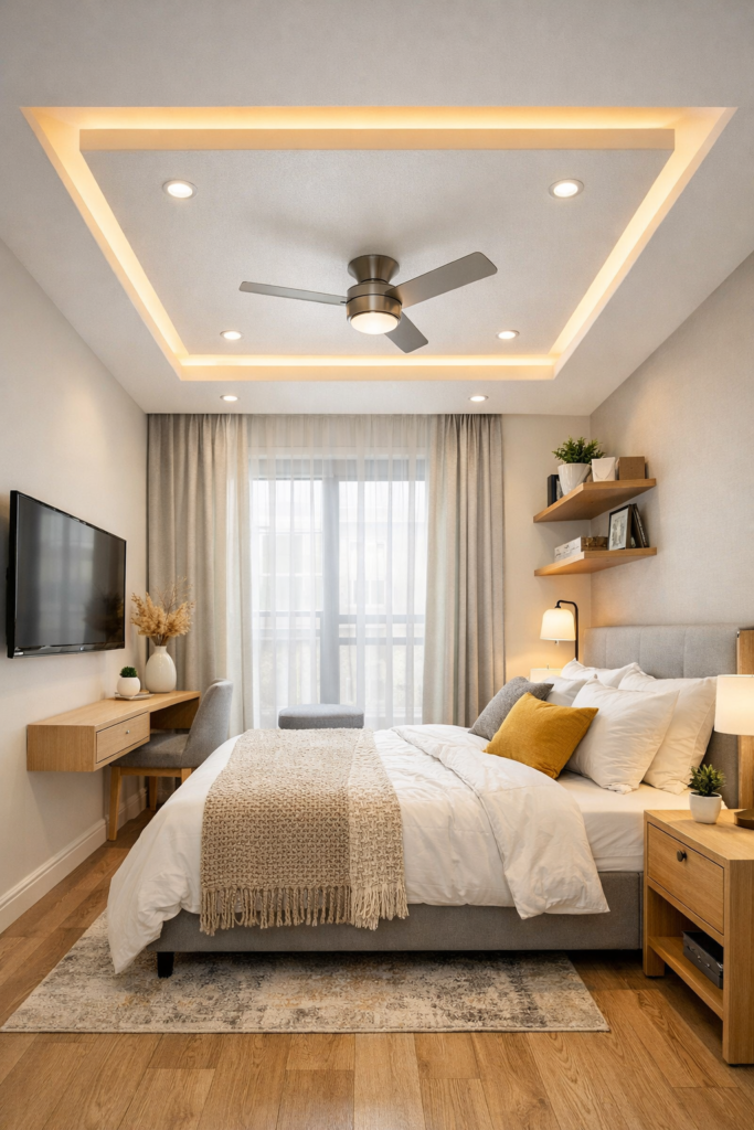 🏢 9. Space-Saving Tray Ceiling for Small Bedrooms