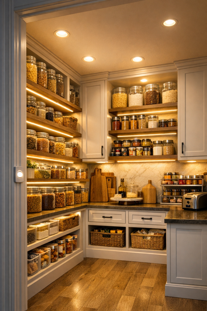 This is one of the most practical Small Kitchen Store Room Ideas, and it keeps the main kitchen clutter-free. A pantry that hides mess is the definition of smart luxury.